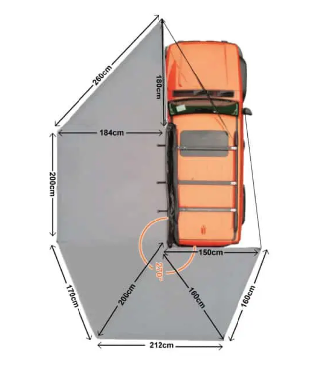This tough self supporting Double Wing Awning is our biggest to date. With arms that wrap around the front as well as the back of the vehicle you get the maximum coverage possible on all sides. Featuring almost 13m2 of covered area the SPEEDWING MAX self supporting awning is one of the largest on the market. Because it folds forwards as well as back a great feature is that when closed, the smaller 2m closed length is ideal for shorter vehicles.